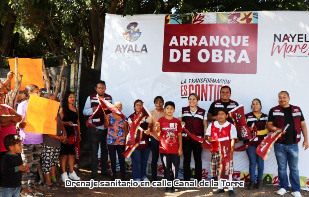 Ayala, Mor.-La Presidenta Municipal, Nayeli Mares, y Arturo Abundez Martínez, presidente del DIF, estuvieron presentes en el arranque de obra construcción de drenaje sanitario en calle Canal de la Torre, Ejidal Rafael Merino. “Estas obras serán de mucho, beneficio para las familias, mejorando la salud y calidad de vida en esta zona del municipio de Ayala” señaló la alcaldesa, quien continua, entregando resultados, “porque la transformación se logra contigo, escuchando y trabajando en cada rincón del municipio”, señaló.