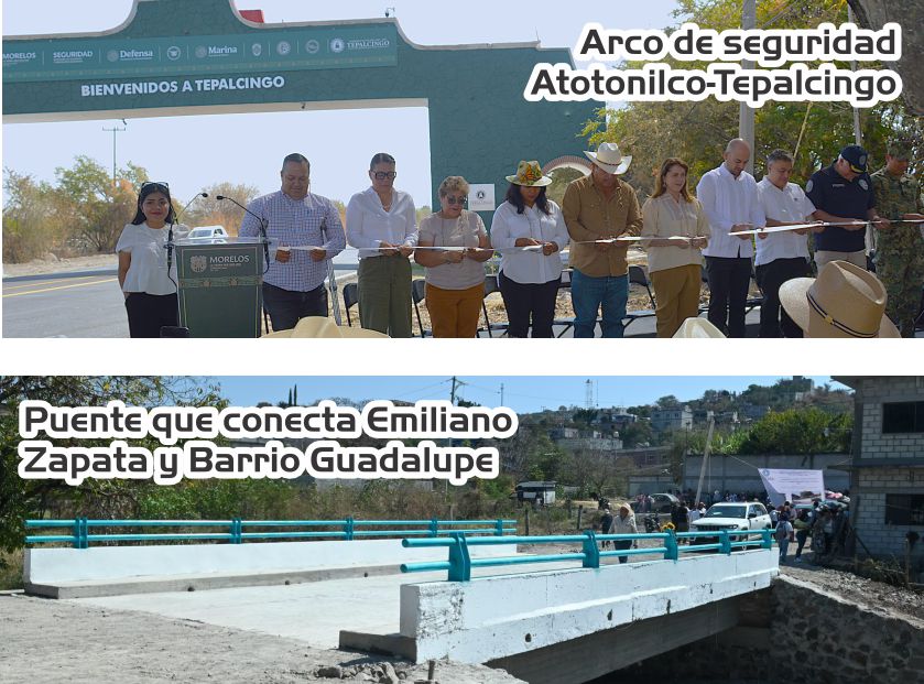 También inauguraron el puente en su primera etapa, que conecta la colonia Emiliano Zapata y Barrio de Guadalupe en cabecera municipal, con una amplia participación ciudadana. Posteriormente cortaron el listón inaugura del arco de seguridad en la carretera Atotonilco-Tepalcingo que cuenta con cámaras de vigilancia para dar seguimiento en tiempo real de la Fiscalía Morelos. Cerraron el recorrido con la entrega de una techumbre y cancha de usos múltiples en el Colegio de Bachilleres COBAEM plantel 07 que beneficiará a más de 800 jóvenes.