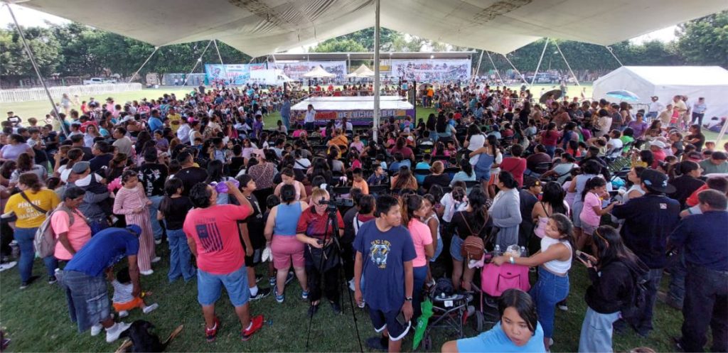Los cientos de niñas y niños acompañados de sus familias, disfrutaron del show del payasito Solecito, un espectáculo de lucha libre, acompañados de palomitas, papas y bolis. Por último se realizó la entrega de juguetes a la infancia presente.