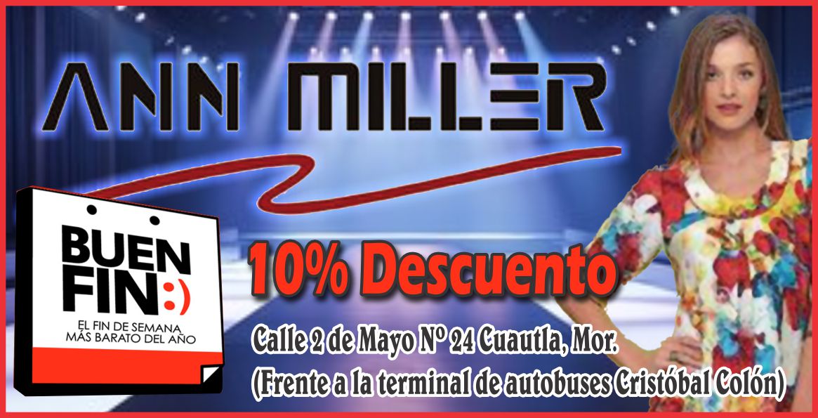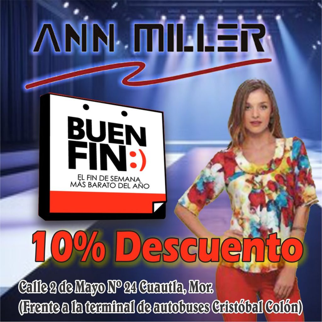 Visita Nuestra Tienda habrá descuentos en: Vestidos, Ropa Casual, Trajes, Blusas, Pantalones, Chamarras. Sólo en Ann Miller Calle 2 de Mayo No. 24 Cuautla, Mor. (Frente a la Terminal de…